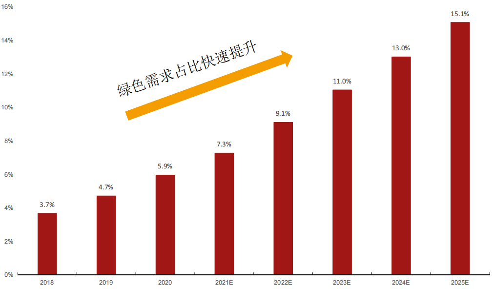 受国内补贴政策影响,国内过去两年分别出现陆上风电和海上风电的抢装潮,2020年陆地风电新增装机量达68.61GW,2021年海上风电新增装机量达16.9GW,今年预计将回归常态。受此影响,全球风电新增装机量今年预计将连续第二年小幅走低,但未来仍有较大增长空间,根据全球风能理事会(GWEC)的预测,2025年全球风电新增装机容量将突破110GW,海上风电将高达31.5%。